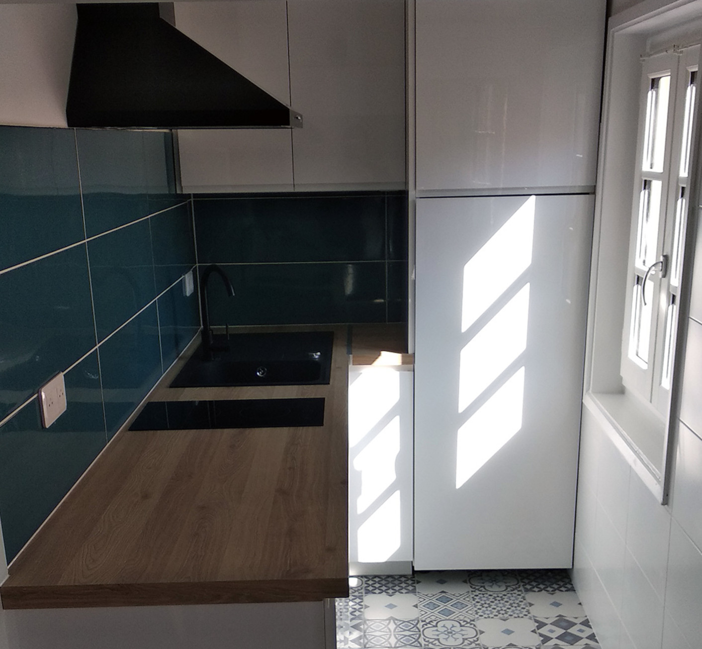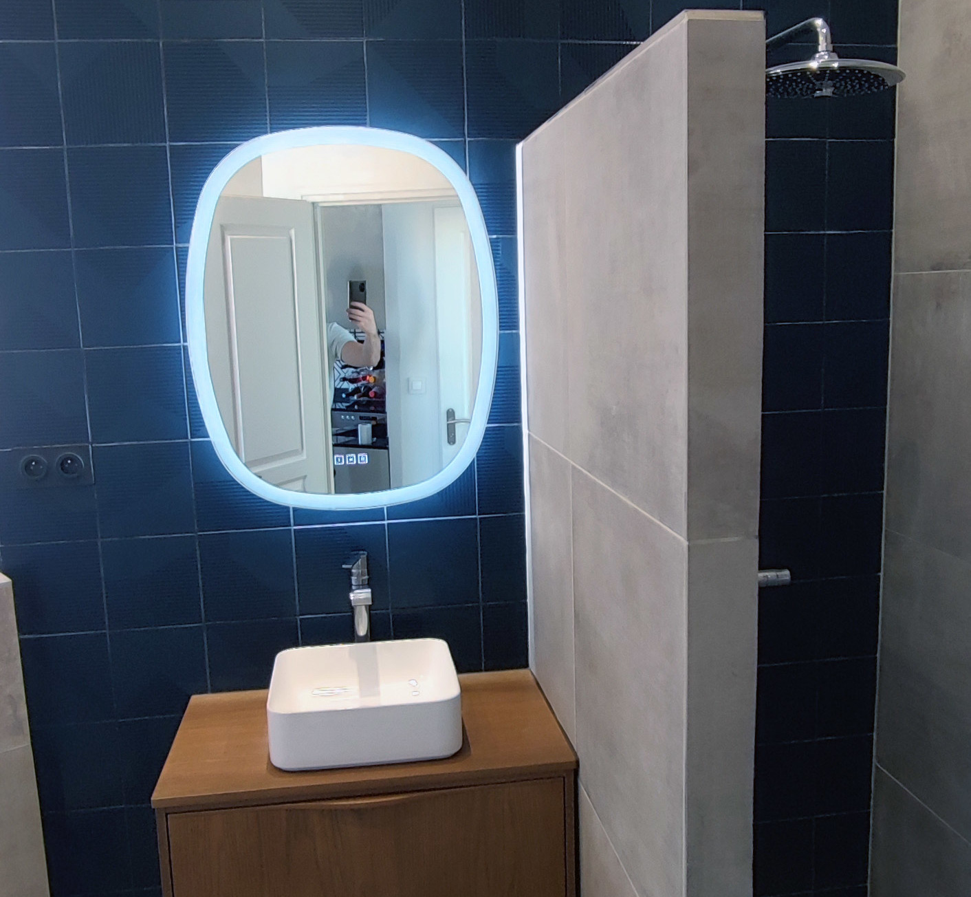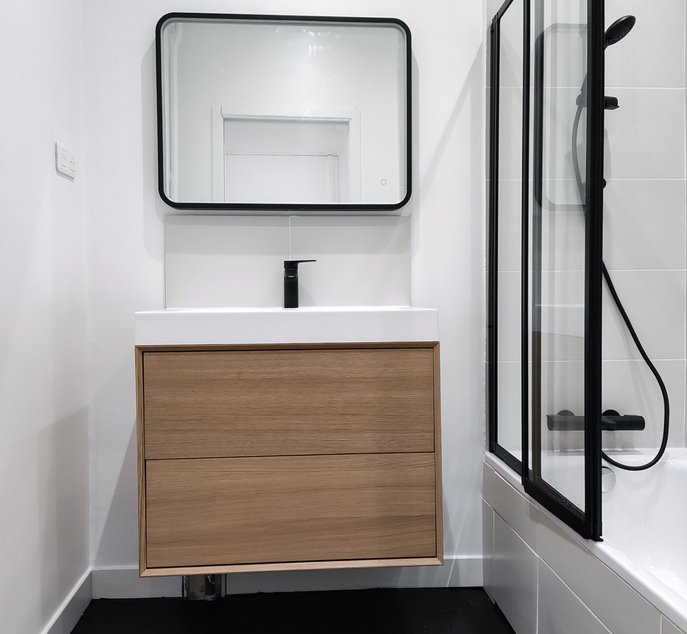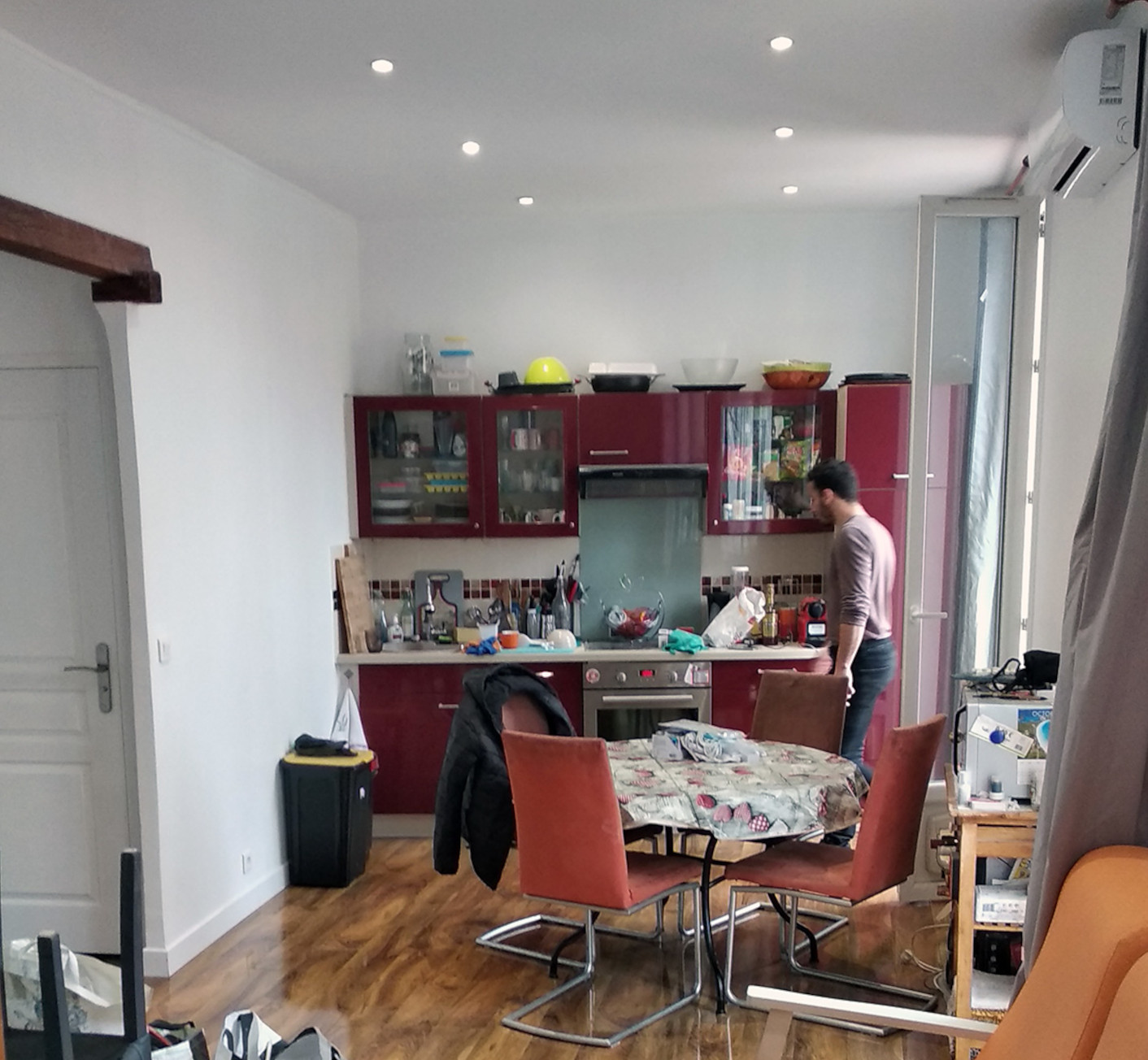 Salle de bain, revêtement de sol, faux-plafonds, peinture.