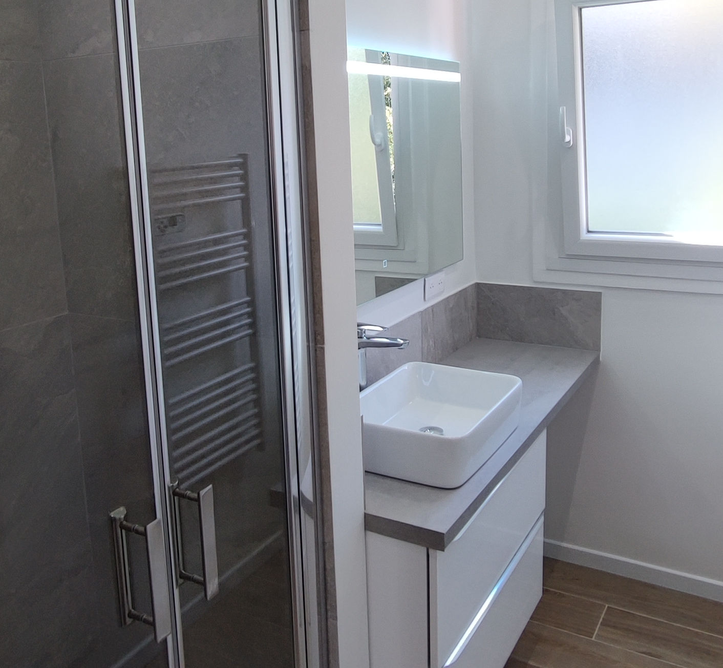 Niveau securité, nous avons crée un nouveau réseau électrique avec tableau aux normes NFC 15-100 ainsi qu'un nouveau réseau d'eau en multicouche avec chauffe-eau extra plat.