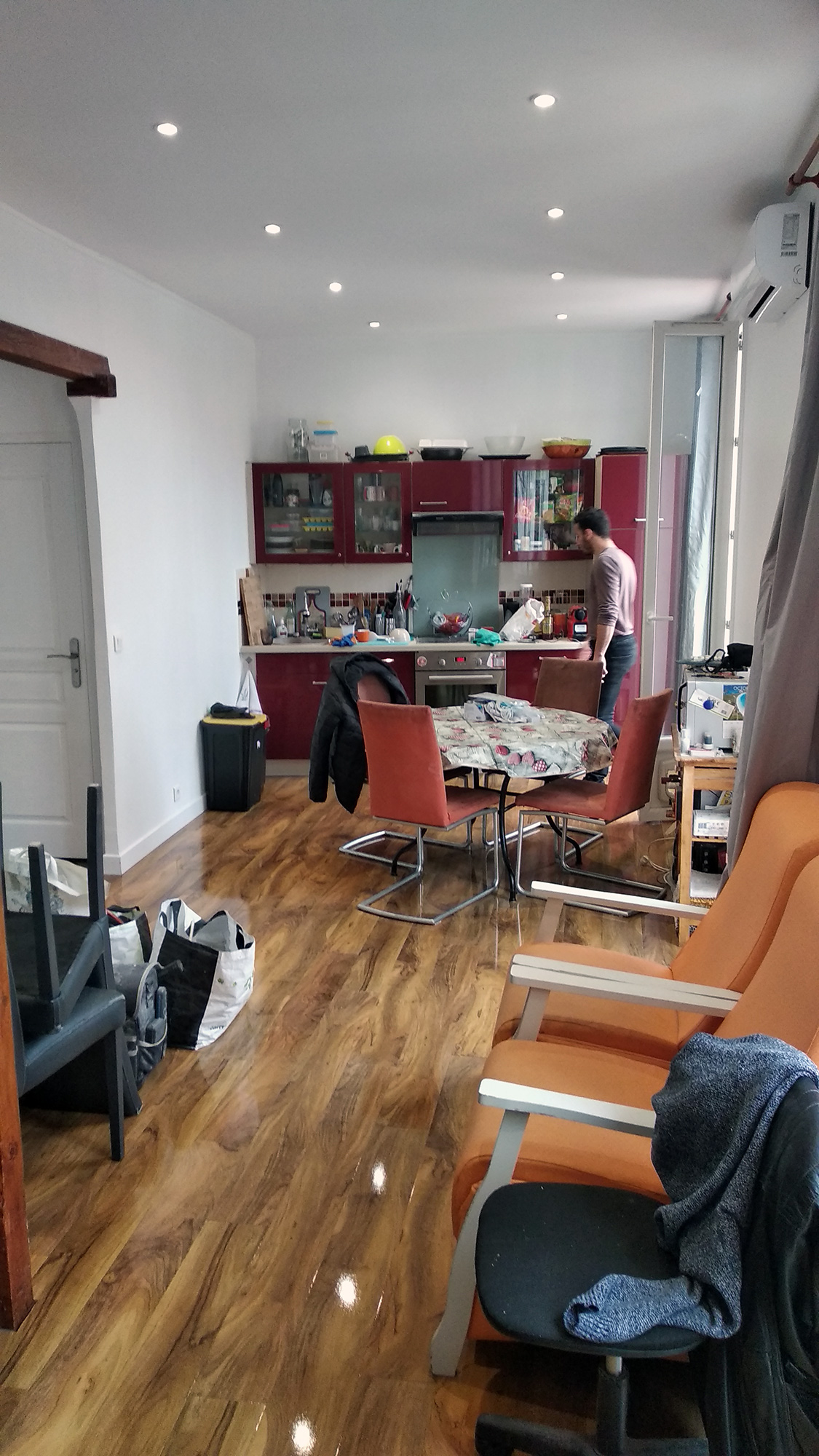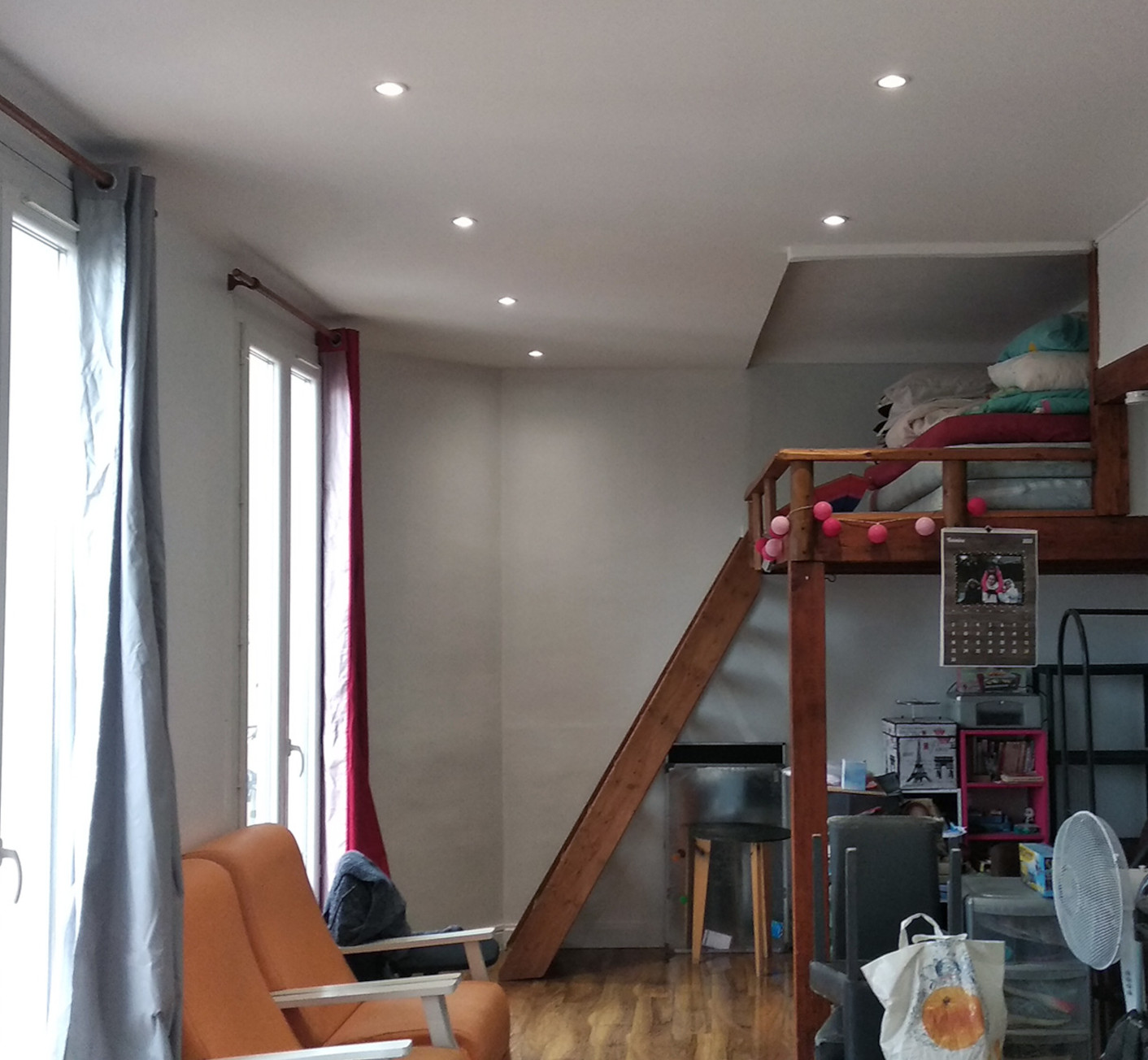 Mission modernité et luminosité. Pour y répondre on a creé un ciel etoilé de spots LED dans des faux plafonds gerés par variateur. Reprise de tous les murs et plafonds avec enduits et peinture.