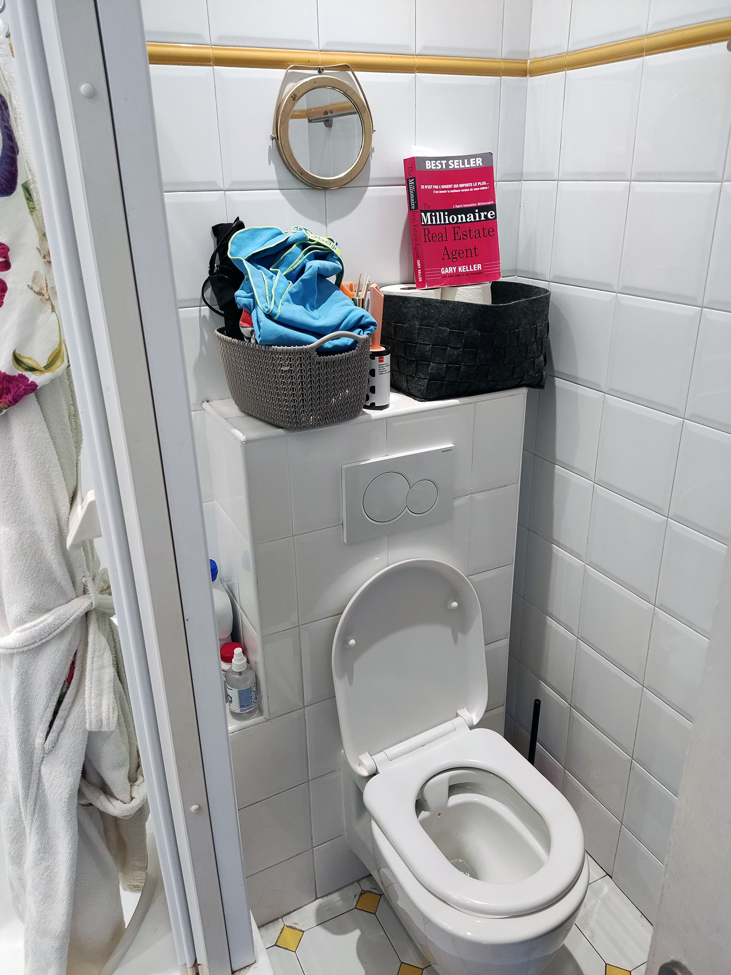 Vanessa à entièrement repensé la salle de bain en partant d'une feuille blanche. Résultat : une magnifique douche à l'italienne avec un carrelage italien grand format créeant un espace chic et moderne. Le toilette suspendu a été deplacé pour optimiser l'accessibilité. Une fenêtre double vitrage sur mesure vient clôturer ce brillant espace.